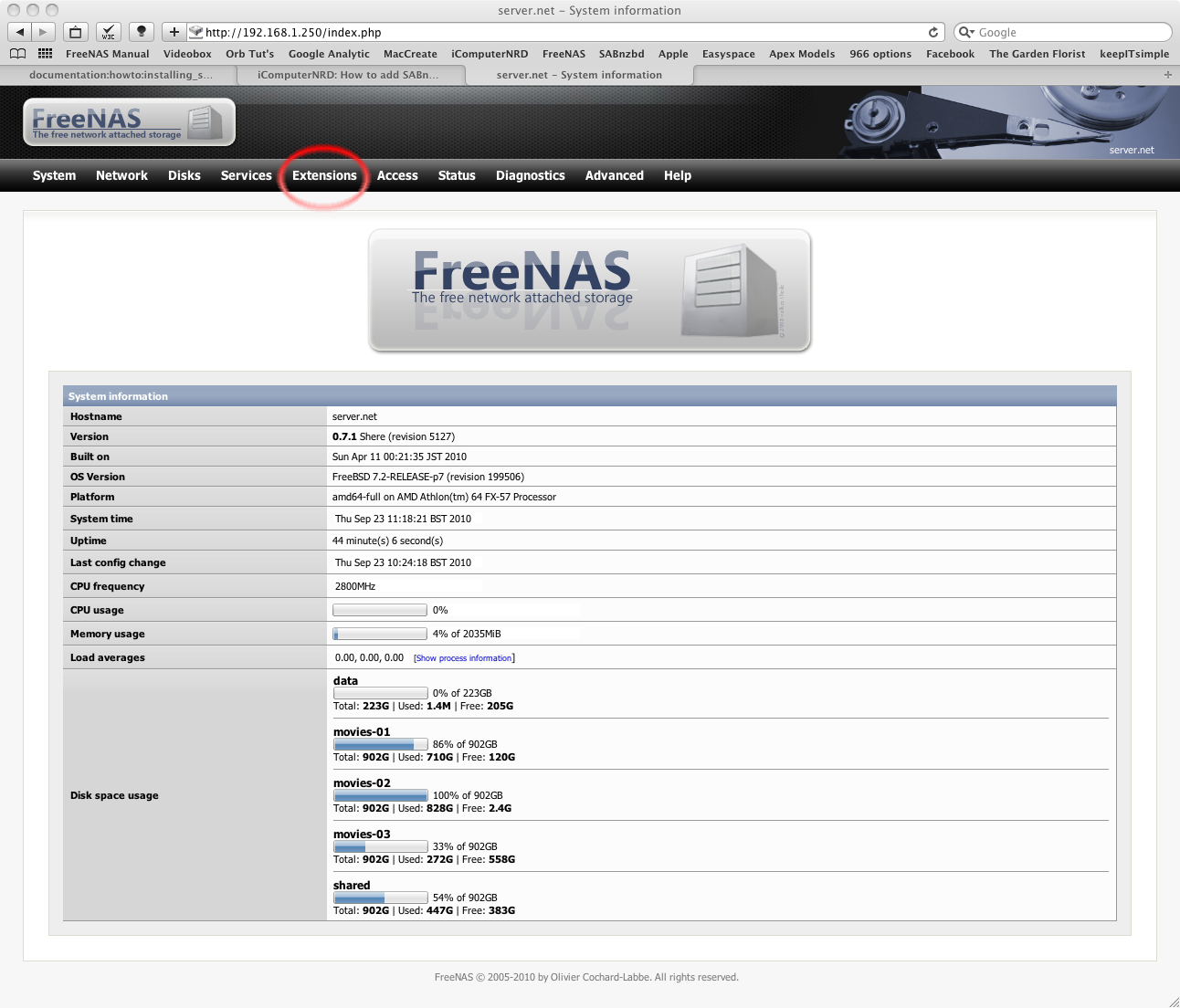 1) If you are using a later version of FreeNAS than 0.69 you will need to add the appropriate packages for your underlying FreeBSD version and architecture. That is beyond the scope of this tutorial.